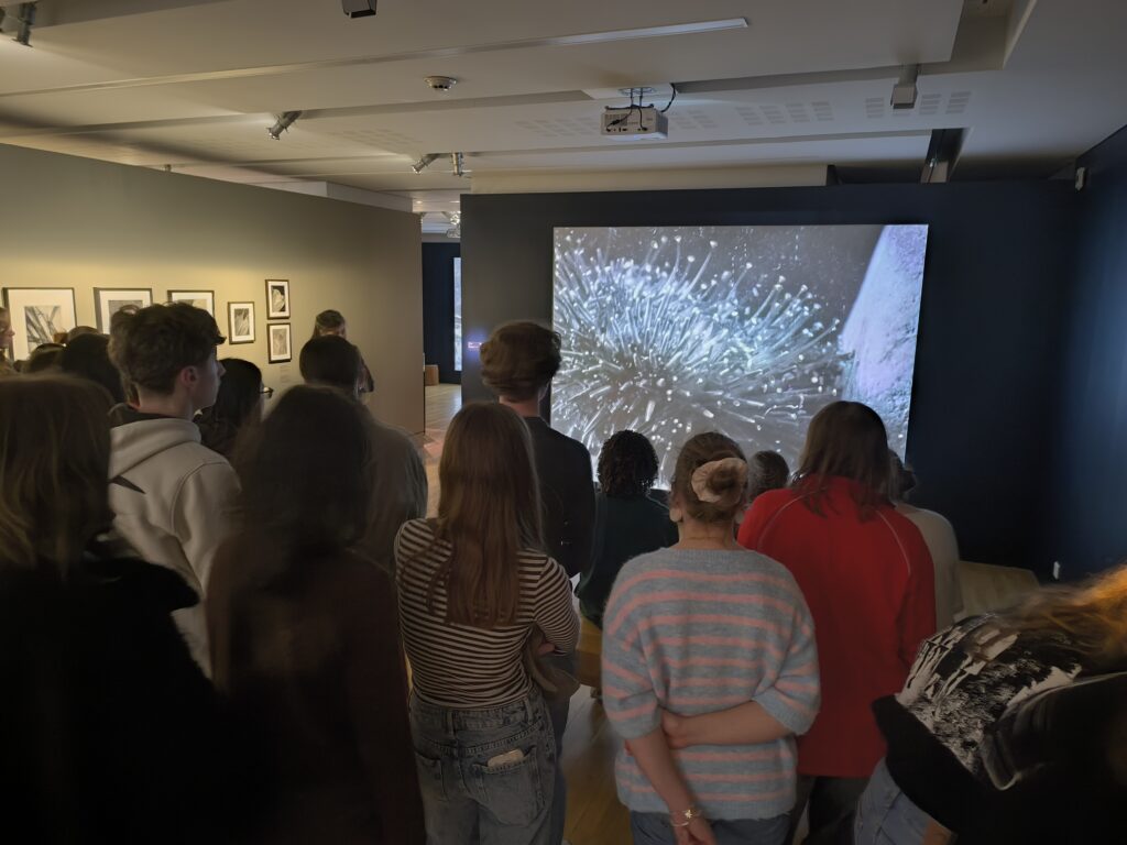 En parallèle, la visite guidée de l’exposition temporaire consacrée à Jean PAINLEVÉ (1902-1978) a particulièrement captivé les élèves. La scénographie et l’immersion dans les nombreux espaces de projection ont plongé le groupe au cœur du monde marin, tout en révélant l’ingéniosité et la créativité du photographe et cinéaste.