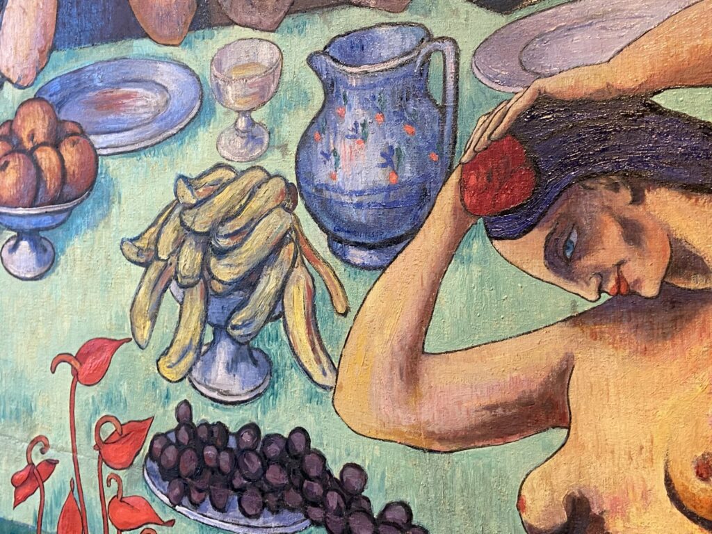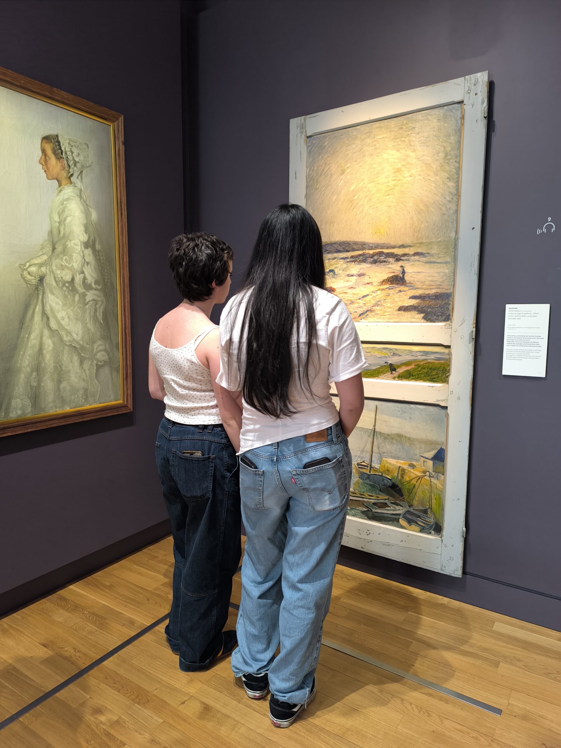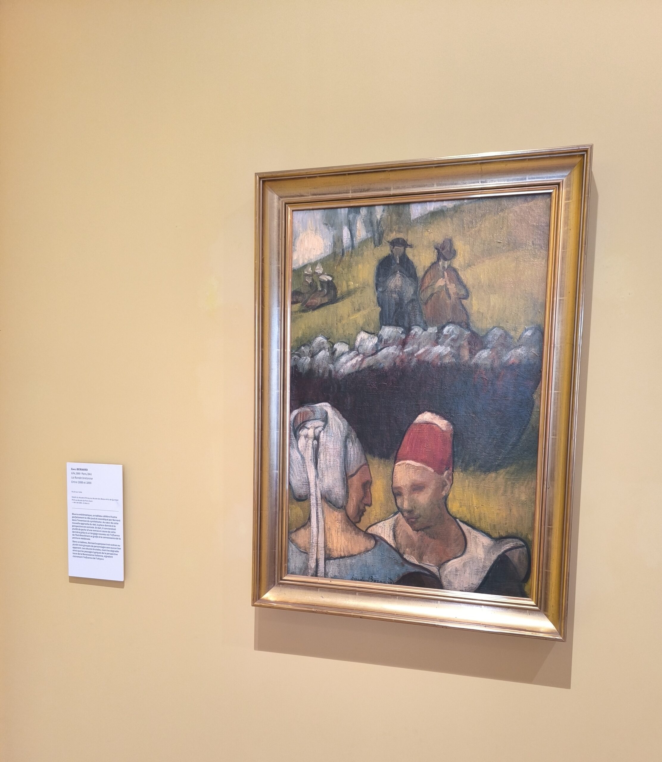Au fil de la visite, les élèves découvrent la naissance d’un nouveau langage plastique, élaboré par un groupe de jeunes artistes réunis sous le nom des Nabis (« prophètes » « inspirés de Dieu » en hébreu). Inscrits dans une avant-garde décisive, ces artistes français posent les bases de l’art moderne en s’affranchissant du réalisme au profit d’une peinture plus expressive mais aussi plus symbolique comme représenté dans le célèbre tableau Le Talisman (1888) de Paul SÉRUSIER. Inspirés par les estampes japonaises, ils privilégient les aplats de couleurs, les formes simplifiées et une approche décorative assumée. Leur regard se tournent naturellement vers la Bretagne, dont ils représentent également la vie quotidienne : Les bretonneries ,scènes devenues emblématiques, ancrées dans le réel et chargées de sens.